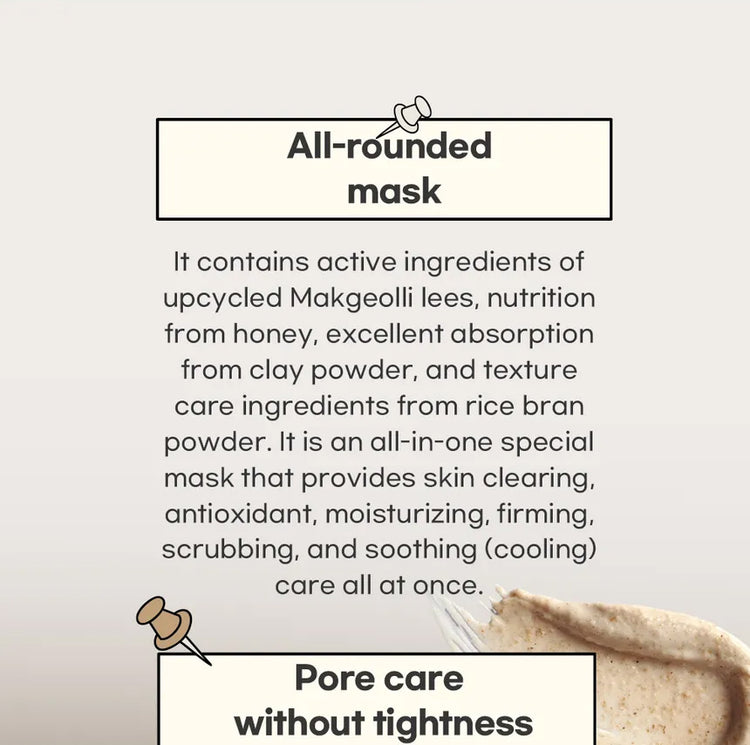 Imagine a dense, creamy mousse that glides onto the skin like whipped butter. Unlike traditional clay masks that dry down to a hard shell, this mask remains moist and elastic on the face. It contains fine, suspension-grade rice grains that provide a soft, tactile scrub during the rinsing process. The aroma is natural and earthy—reminiscent of sweet grain and raw honeycomb—containing no synthetic fragrances.