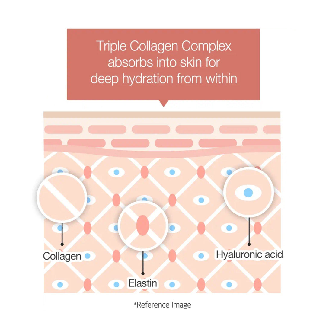 Water, Glycerin, Niacinamide, Cetyl Ethylhexanoate, Butylene Glycol, Caprylic/Capric Triglyceride, Sodium Hyaluronate, Butyrospermum Parkii (Shea) Butter, Argania Spinosa Kernel Oil, Hydrolyzed Collagen, Soluble Collagen, Atelocollagen, Hydrolyzed Elastin, Panax Ginseng Berry Extract, Centella Asiatica Extract, Ceramide NP, Palmitoyl Tripeptide-5, Adenosine, and Tocopherol.