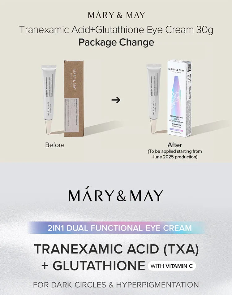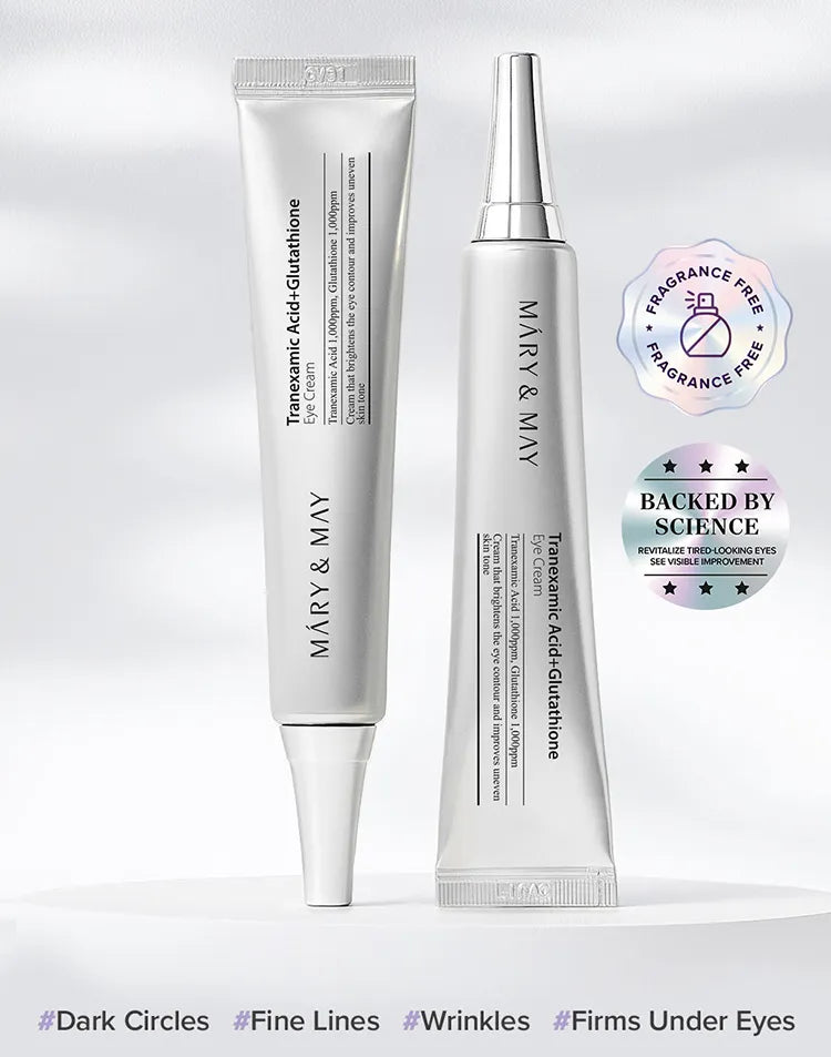 Is your mirror reflecting tired, shadowed eyes regardless of how much sleep you get? The Mary&May Tranexamic Acid + Glutathione Eye Cream offers a sophisticated approach to brightening the most delicate part of your face. Unlike standard moisturizers, this treatment focuses on the biological pathways of skin discoloration. By merging a specialized acid with an elite antioxidant, it works to neutralize the look of stubborn "dark rings" caused by fatigue and environmental pollutants. The result is a visibly clearer, more energized eye contour that looks naturally rested.